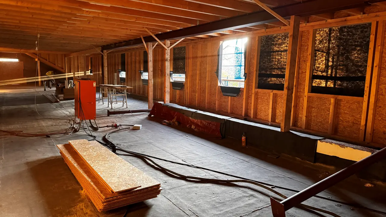 Währenddessen gehen die Arbeiten der Zimmerleute zügig weiter: Die Gauben sind bereits weitgehend fertiggestellt, und bis Anfang November soll das Dach vollständig geschlossen und gedämmt sein, sodass anschließend die neuen Fenster eingebaut werden können.